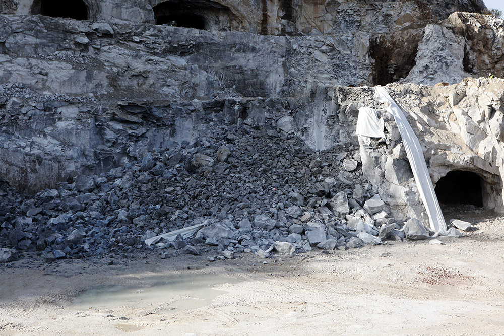 Planmäßig ist das Haufwerk im unmittelbaren Sprengbereich liegengeblieben.